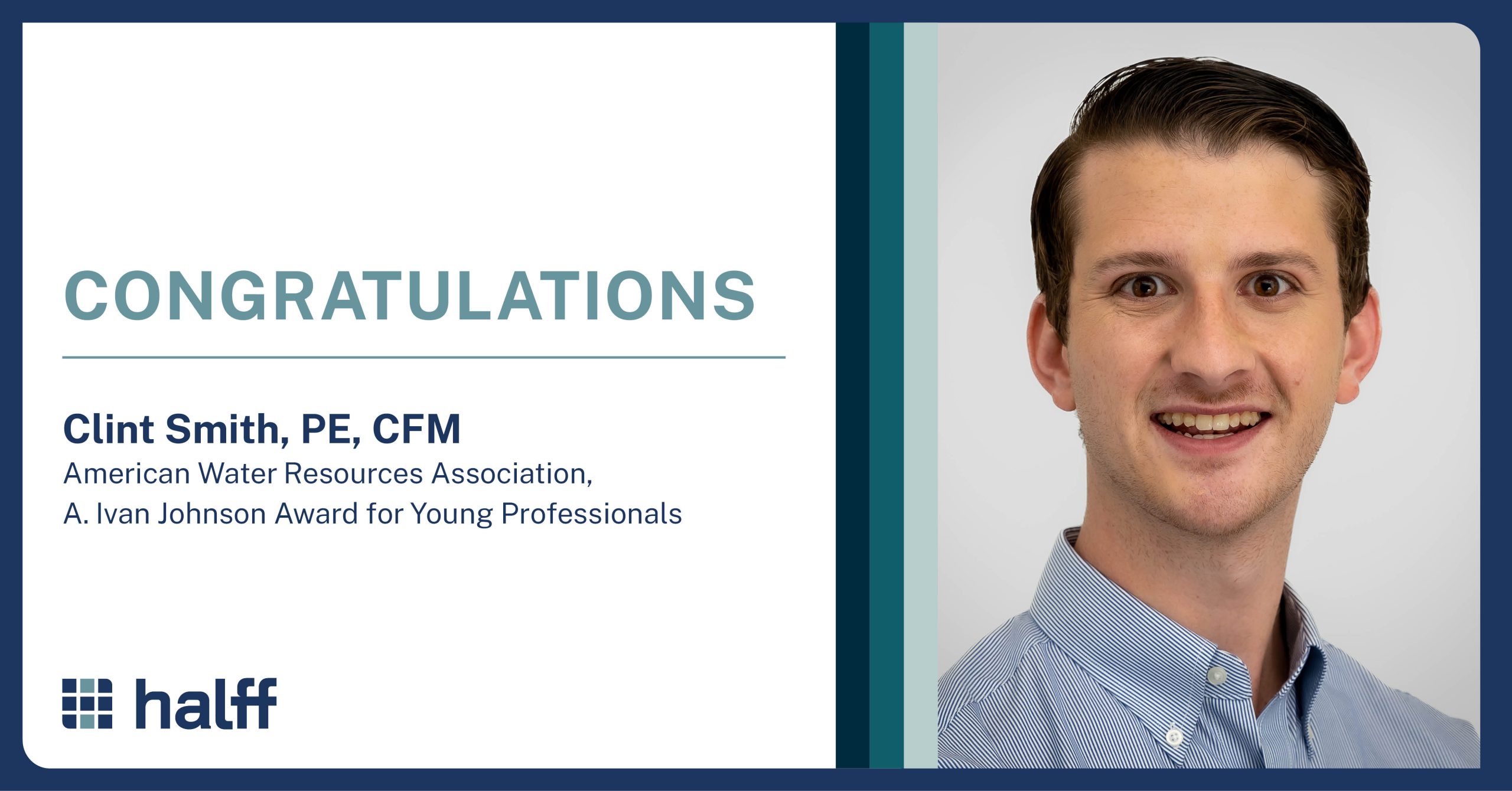 RICHARDSON, Texas—Halff Project Manager Clint Smith, PE, CFM, received the A. Ivan Johnson Award for Young Professionals from the American Water Resources Association (AWRA).